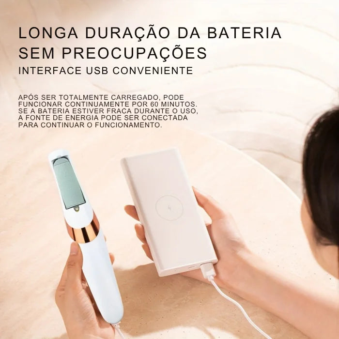 O Lixador e Removedor de Calos Recarregável é a solução moderna e eficaz para transformar pés ressecados em pés macios, lisos e bonitos em poucos minutos — sem dor e sem esforço!