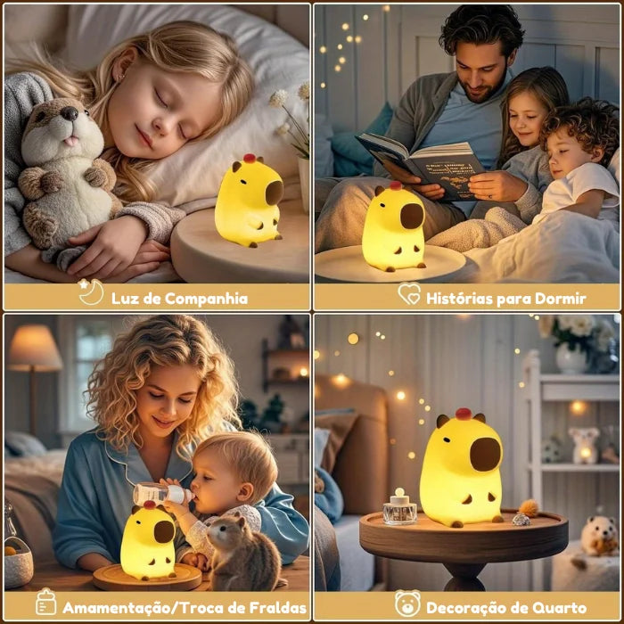 Imagine chegar em casa, apagar as luzes e ser recebido por uma luz suave, quente e acolhedora… Agora imagine essa luz vindo de uma capivara fofa e irresistível! 😍