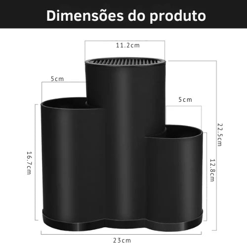 O Porta Utensílios e Facas de Cozinha Multifuncional é a solução prática e sofisticada que você precisa para manter tudo sempre organizado, higiênico e ao alcance das mãos.