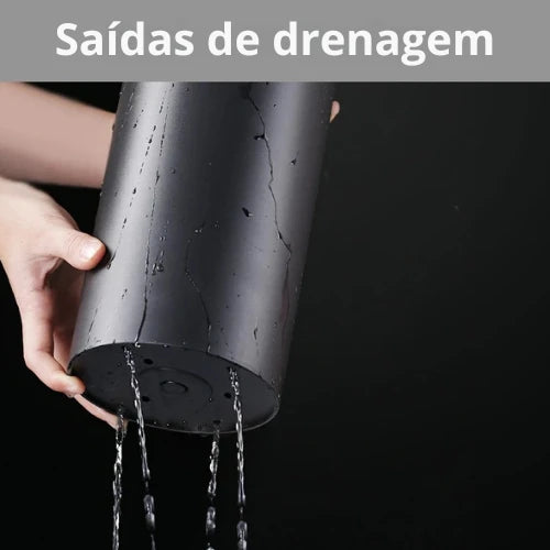 A base com furos de drenagem mantém seus utensílios secos, prolongando a vida útil das facas, colheres e garfos, além de evitar mofo e bactérias.