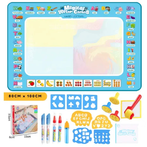 O Tapete de Desenho Mágico à Base d’Água é a solução definitiva para entreter seus filhos de forma segura, divertida e educativa, sem causar dor de cabeça para os pais. Basta encher a caneta com água, e a mágica acontece: as cores surgem somente no tapete, sem sujar roupas, pele ou móveis.